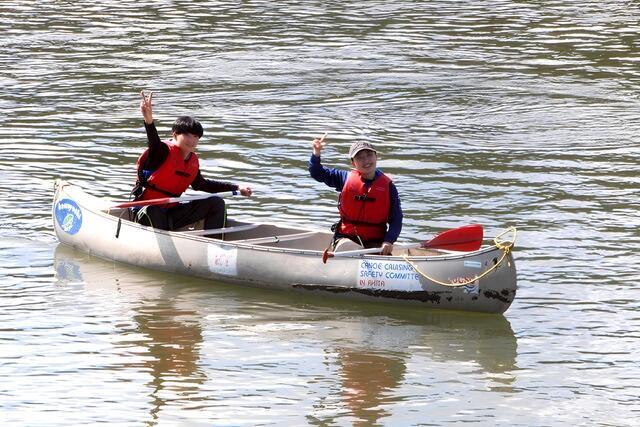 今回は秋田国際ダリア園と雄物川を会場に開催。秋晴れのすがすがしい天候の中、110名の参加者が集まりました。参加者を2つの班に分け、雄物川でのカヌー体験、秋田国際ダリア園での学習、電動車からの給電学習を行いました。