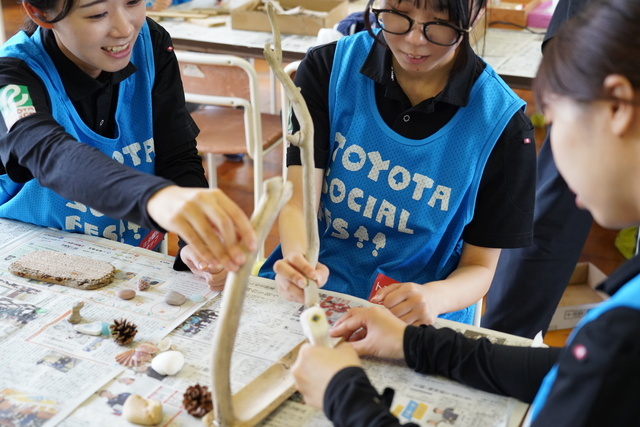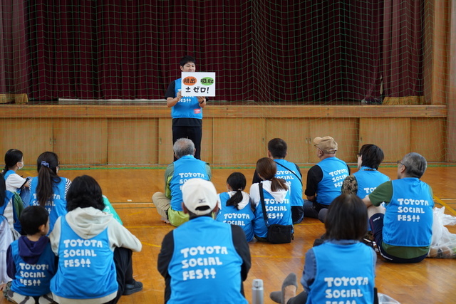 10月4日、楽しみながら環境を守る意識を育てるイベント「TOYOTA SOCIAL FES!!」があわら市の「波松ステイ」で開催されました。あいにくの雨の中、約110名がプログラムに参加しました。予定していた波松海岸での清掃活動はできませんでしたが、地球温暖化を防ぐ取り組みや漂着ゴミなど、身近な環境問題への対策について学び、福井の未来のために何ができるかを考えました。