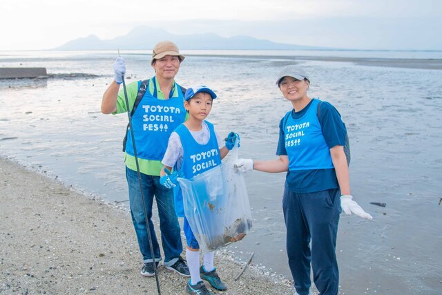 今回で13回目の開催となったTOYOTA SOCIAL FES!!。会場となった荒尾干潟(荒尾市)には、約100名の参加者が集まってくれました。有明海東部に位置する荒尾干潟は南北約9・1キロメートル、東西最大幅約3・2キロメートル。単一の干潟としては国内最大級の広さを誇ります。また多彩な生き物の宝庫であり、渡り鳥の飛来地としても知られています。2012年には国際的に重要な湿地として「ラムサール条約湿地」に登録されました。