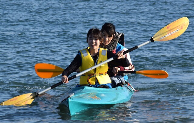 清掃を終えた参加者たちは北ビーチに移動し、マリンスポーツを体験しました。11月とは思えない暖かな気候の中、ビッグサップやシーカヤックに挑戦。水しぶきをあげながらパドルを動かして思い思いに海面を進み、歓声を上げました。初めてマリンスポーツを体験したという宮崎市・クラーク記念国際高2年の広川留華さんは「初めは怖かったけれど、徐々に慣れて楽しかったです。海に入ると気持ちいいですね。心も体も癒されました」と笑顔を見せました。活動を通じて、海の大切さや魅力をあらためて実感した参加者たち。「またこの活動に参加したい」という声も聞かれ、皆満足した様子でした。