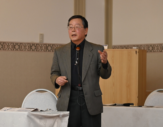 青井名誉教授は「ツキノワグマの生態と地域ぐるみの被害防除」と題した講義の中で、北東北で2023年度、捕獲数が過去最多となったことを報告。「人家から数百メートル離れた人里にも生息し、おいしいものを覚えれば山奥からでも移動してくる」と解説しました。参加者はメモを取りながら聞き入っていました。