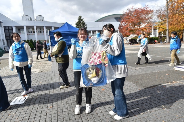 天童市にある県総合運動公園は「スポーツ・レクリエーションのメッカ」。サッカーJ2・モンテディオ山形のホームゲーム開催時は大勢のサポーターでにぎわうほか、スポーツを楽しむ人たちの姿が絶えません。緑豊かな中で爽やかな汗をかくためにも良好な環境は不可欠。11月8日に行われたTOYOTA SOCIAL FES!!には県内外の約110人が参加。競技形式のゴミ拾い「スポGOMI」を行いました。