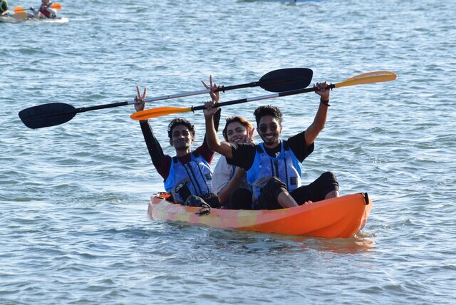 清掃を終えた参加者たちは北ビーチに移動し、マリンスポーツを体験しました。11月とは思えない暖かな気候の中、ビッグサップやシーカヤックに挑戦。水しぶきをあげながらパドルを動かして思い思いに海面を進み、歓声を上げました。初めてマリンスポーツを体験したという宮崎市・クラーク記念国際高2年の広川留華さんは「初めは怖かったけれど、徐々に慣れて楽しかったです。海に入ると気持ちいいですね。心も体も癒されました」と笑顔を見せました。活動を通じて、海の大切さや魅力をあらためて実感した参加者たち。「またこの活動に参加したい」という声も聞かれ、皆満足した様子でした。