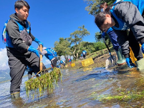 秋から冬にかけて枯れる水草がCODを高め、水質汚染を進行させる一因と考えられています。福島県のシンボルのひとつである猪苗代湖の水質日本一復活を目指し、湖の環境保全に取り組んでいる「NPO法人 輝く猪苗代湖をつくる県民会議」とともに、漂着水草の回収作業を実施します。回収された水草は、農作物の堆肥として有効活用されます。猪苗代湖を取り巻く環境や、今後の課題などについての解説も行います。