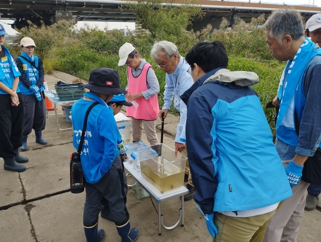 当日は夏日となり、参加者は汗をかきながらも笑顔でゴミ拾いや、株の水やりでのバケツリレーを楽しんでいました。横浜商科大学3年生の2人組は「今日植えた株が咲くのが楽しみ」と笑顔で話しました。小学生の子どもと参加した保護者からは、「商業施設より、自然の中で過ごす方が好きなのでこういうイベントはうれしい」、「川の生きものや自然と触れ合える機会が普段ないので、子どもはもちろん、私も学びが多い」と、親子で充実した一日となりました。