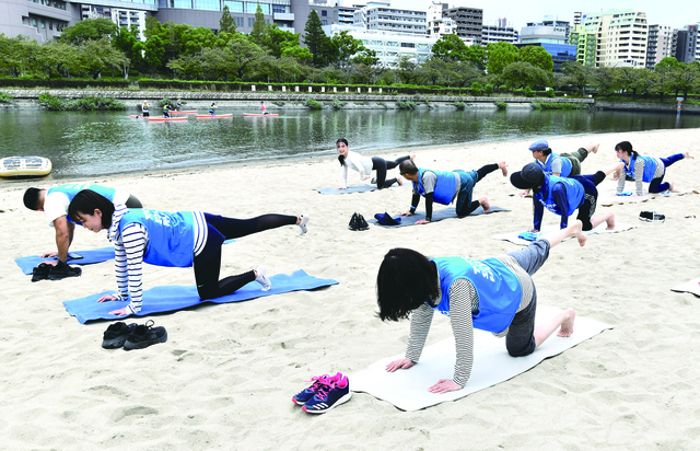 今回体験いただいたマリンスポーツはSUP(スタンドアップパドルボード)、BIGSUP、カヌー、フローティングバイクの4種類!参加者はそれぞれ希望のマリンスポーツを体験し、中には複数の種目を体験されるアクティブな方も。またマリンスポーツ体験の合間にはビーチヨガ体験も行い、いろいろなポーズにチャレンジされていました。