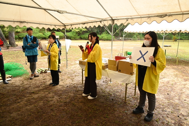 参加者は、甲南女子大学社会連携課の学生スタッフ「himawari(ヒマワリ)」が考えた防災クイズで地震と土砂災害の関連性などを学習。自作のパネルを活用し、自分ごとに学べるようにクイズを出題。参加者は協力をしながら、全問正解を目指し多くの学びを得ました。また、甲南大学 BambooにThank you Project(バンブーにサンキュープロジェクト)は放置竹林の課題解決に取り組んでいる現状を報告。竹林整備や竹を有効活用した商品を紹介し、参加者も消費者として環境を守るためにできることがあると気づきを得ました。