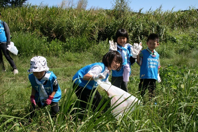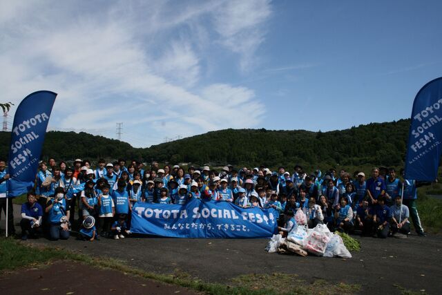 那須連山を源流とし、関東随一の清流といわれる那珂川。豊かな自然が残るこの川で、9月21日、「TOYOTA SOCIAL FES!!」が開催されました。前日の雨から一転し、青く晴れ渡った秋空の休日。参加者約100名は、淡水魚水族館「なかがわ水遊園」で那珂川に生息するアユや外来植物についての座学を受けた後、河川敷においてクリーンアップ活動を行いました。