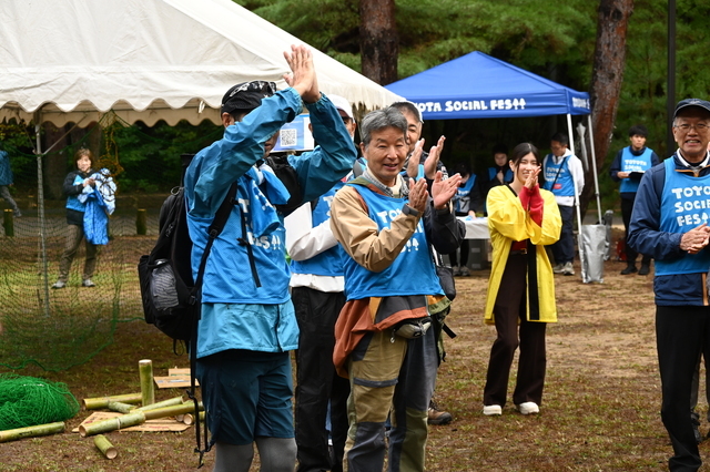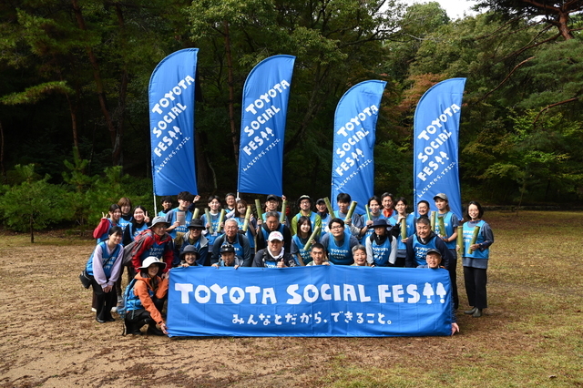 今回の TOYOTA SOCIAL FES!! は、六甲山大学実行委員会共催、甲南大学 BambooにThank you Project、甲南女子大学、神戸市の協力のもと、毎秋恒例の「こうべ森の文化祭」のとなりで、10月26日に開催されました。森の文化祭では六甲山で活動している市民グループなど約30団体のブースが並び、子どもも大人も楽しめる工作や自然観察などの体験プログラムや、クイズラリーなどが楽しめました。まず、森林保全の大切さを学ぶため、六甲山地の砂防に取り組む森の世話人事務局の赤井裕さんが、土砂災害が起きやすい六甲山地における森林保全の大切さを講演。「人が手入れを続けないと荒廃していく恐れがある」と解説しました。参加者は六甲山の災害史とともに、人が手を入れ続けることによる森林保全の大切さをあらためて認識しました。