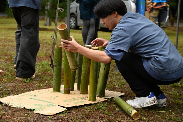参加者は、甲南女子大学社会連携課の学生スタッフ「himawari(ヒマワリ)」が考えた防災クイズで地震と土砂災害の関連性などを学習。自作のパネルを活用し、自分ごとに学べるようにクイズを出題。参加者は協力をしながら、全問正解を目指し多くの学びを得ました。また、甲南大学 BambooにThank you Project(バンブーにサンキュープロジェクト)は放置竹林の課題解決に取り組んでいる現状を報告。竹林整備や竹を有効活用した商品を紹介し、参加者も消費者として環境を守るためにできることがあると気づきを得ました。