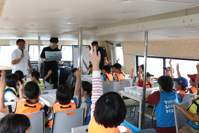ラムサール登録湿地である島根県東部の宍道湖は、淡水と海水の入り交じる汽水湖。美しい夕日や国内随一のヤマトシジミの産地として有名ですが、近年は富栄養化や猛暑による環境悪化が課題です。13年目となる今年のTOYOTA SOCIAL FES!!では親子連れや学生ら約120人が「宍道湖まるごと体験クルーズ」で自然を満喫し、湖の魅力と環境を守る大切さを学びました。