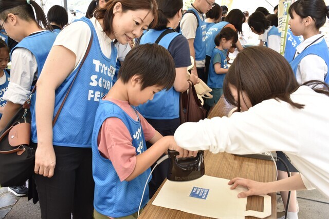 砥部町の地場産業の砥部焼は、江戸時代中ごろ、砥石(といし)製造の際に出る石くずを利用して始まりました。砥部焼に象徴される伝統文化や、自然と共に生きる持続可能な暮らしの知恵を次世代につなごう―。そんな思いを込めた「TOYOTA SOCIAL FES!!」が10月5日、砥部町千足の砥部焼観光センター炎(えん)の里で開催され、県内から親子連れら約100人が参加しました。