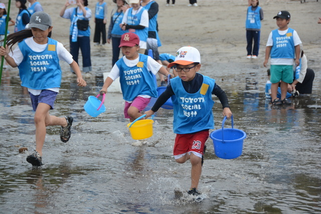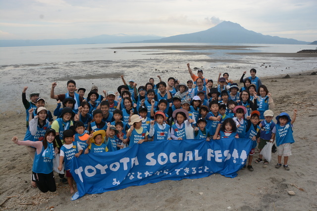 「TOYOTA SOCIAL FES 鹿児島」は、鹿児島県の美しい自然を守る活動に取り組んでいます。今年は10月に姶良市の重富海岸で「干潟の大運動会」を開きました。参加した約80人は干潟で泥だらけになりながら、競技やゴミ拾いなどを通じて、多様な生き物を育む錦江湾やSDGs(持続可能な開発目標)について学びました。